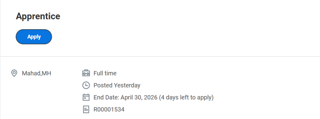 The job is based in Mahad, Maharashtra.