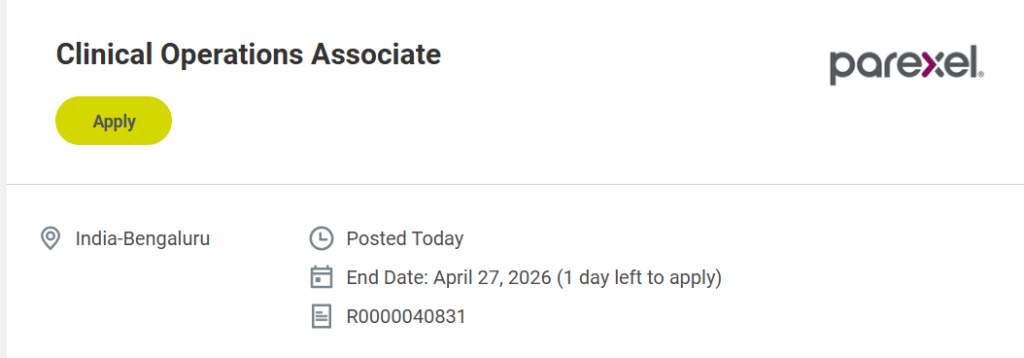 The Clinical Operations Associate Parexel Job 2026 is an excellent opportunity for candidates seeking to establish a career in clinical research. With exposure to global trials, regulatory compliance, and hands-on operational work, this role provides a strong foundation for long-term growth. Interested candidates should apply online before the deadline.