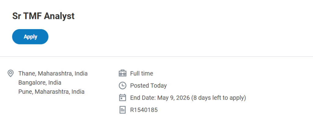 The Sr TMF Analyst IQVIA Jobs 2026 opportunity is ideal for experienced professionals in clinical research and records management. With global exposure, structured processes, and strong career growth, this role can significantly enhance your professional journey. Apply now to take the next step in your career.