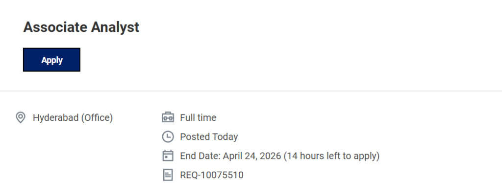 | Job Title | Associate Analyst |