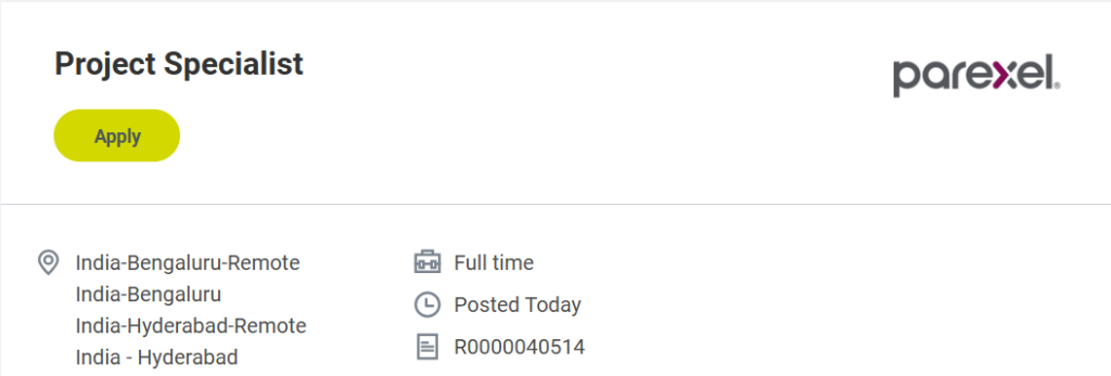 Latest pharma jobs Project Specialist Parexel job for freshers and experienced candidates apply online eligibility and salary details