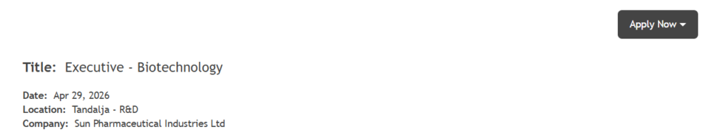 Candidates interested in this role can apply through the official online career portal of Sun Pharma. Make sure your resume highlights your technical expertise in biotechnology, analytical techniques, and any research experience.